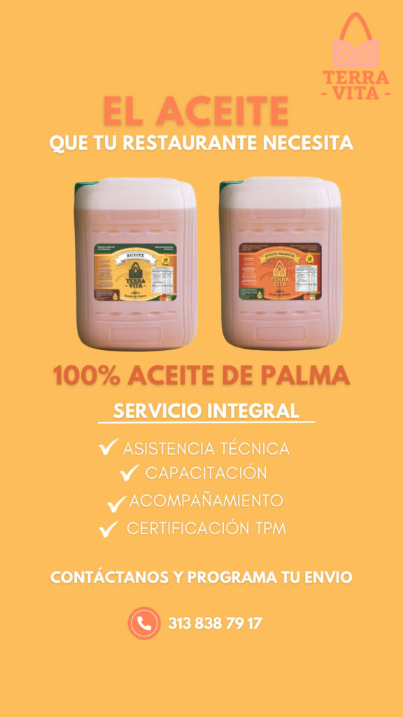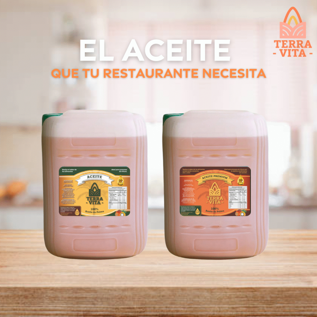 Aceite Terravita es un Aceite refinado de palma, especial para frituras y procesos de cocción hasta 220°. Elaborado con oleína de palma, antioxidantes BHT y/o TBHQ, y ácido cítrico. Registro sanitario PSA-0014742018.